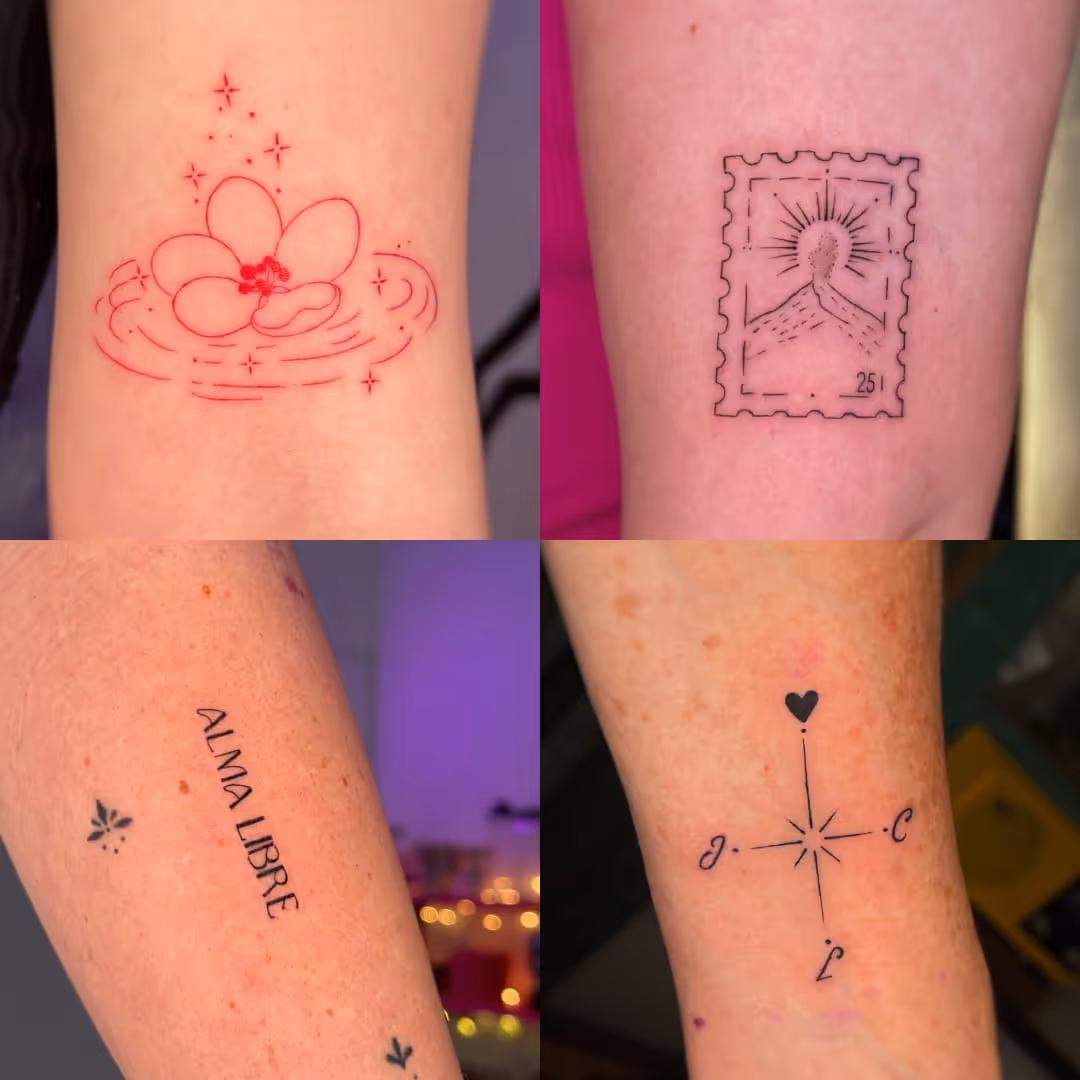 Soy tatuadora especializada en tatuajes de línea fina en Antigua Guatemala, con más de 4 años de experiencia creando diseños delicados y personalizados. Combino línea fina, color suave y detalles estilo glitter para dar vida a piezas sutiles y cuidadosamente elaboradas. Cada tatuaje se realiza con calma, pasión y dedicación, siguiendo rigurosos estándares de higiene y cuidado, para que la experiencia sea tan especial y segura como el resultado final.