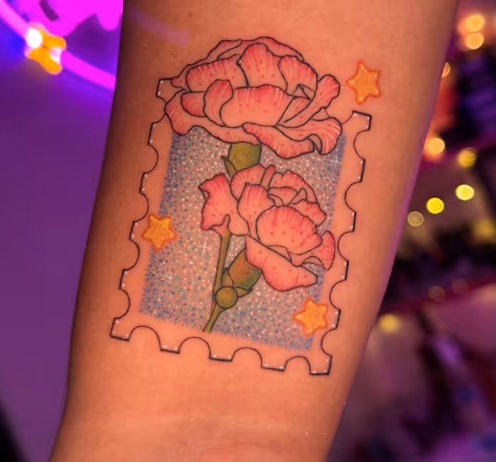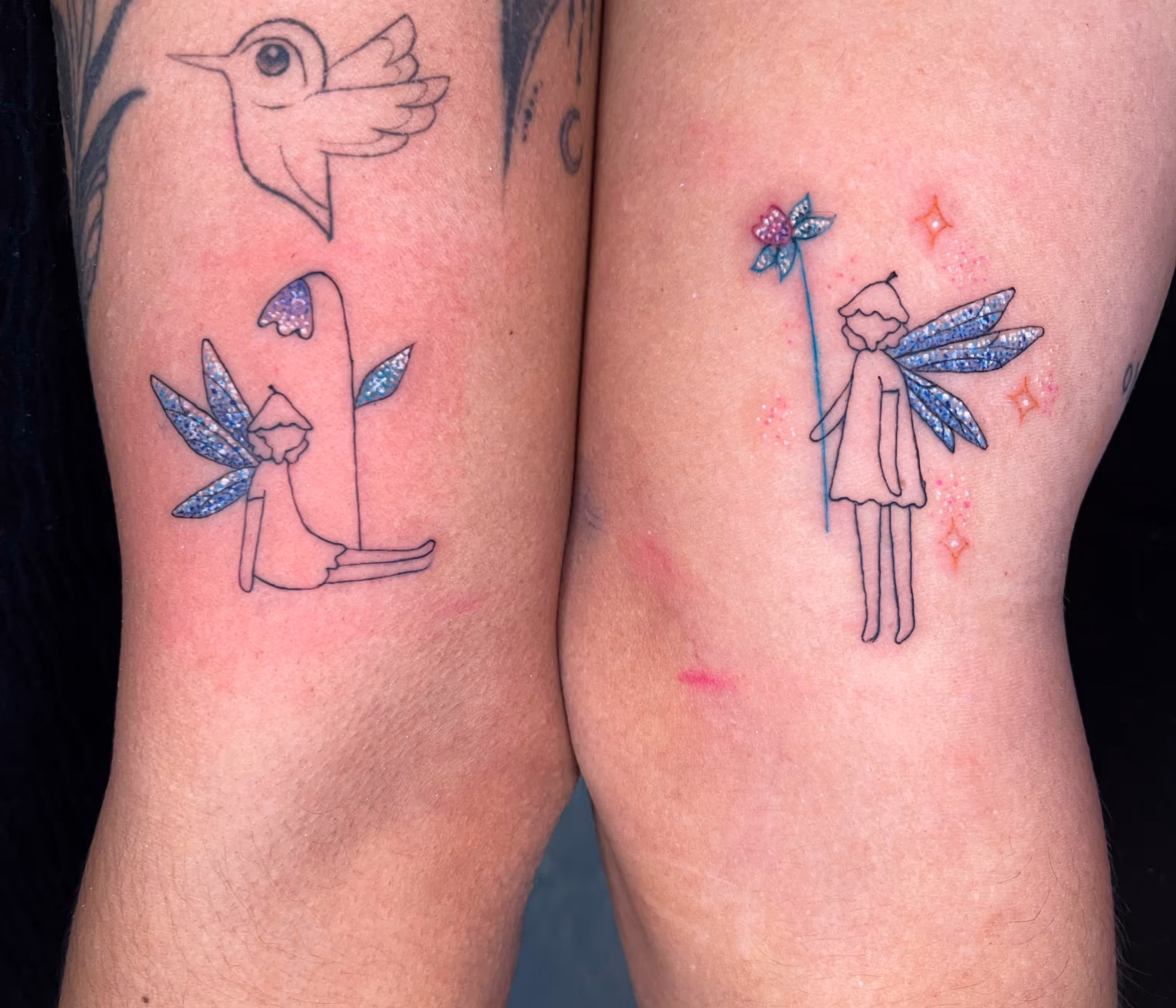 Fine line and glitter tattoos in Antigua Guatemala by Delicate by Exmii, tattoo artist at Maleza Tattoo Studio. A calm, private space offering handcrafted designs, with thoughtfully scheduled appointments and occasional walk-in availability.
